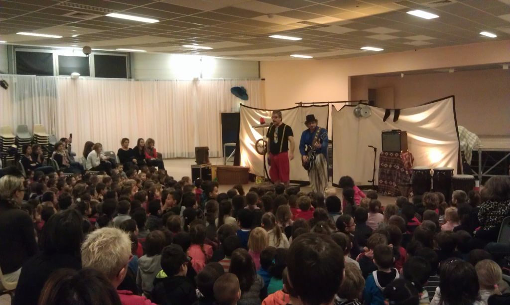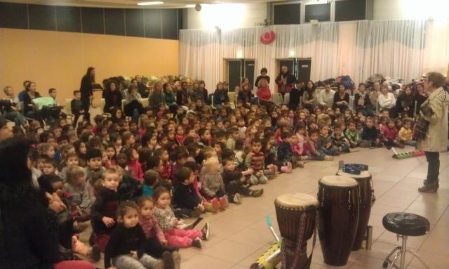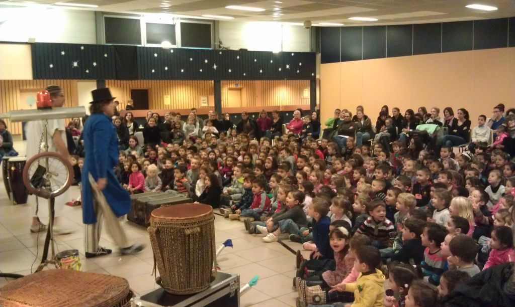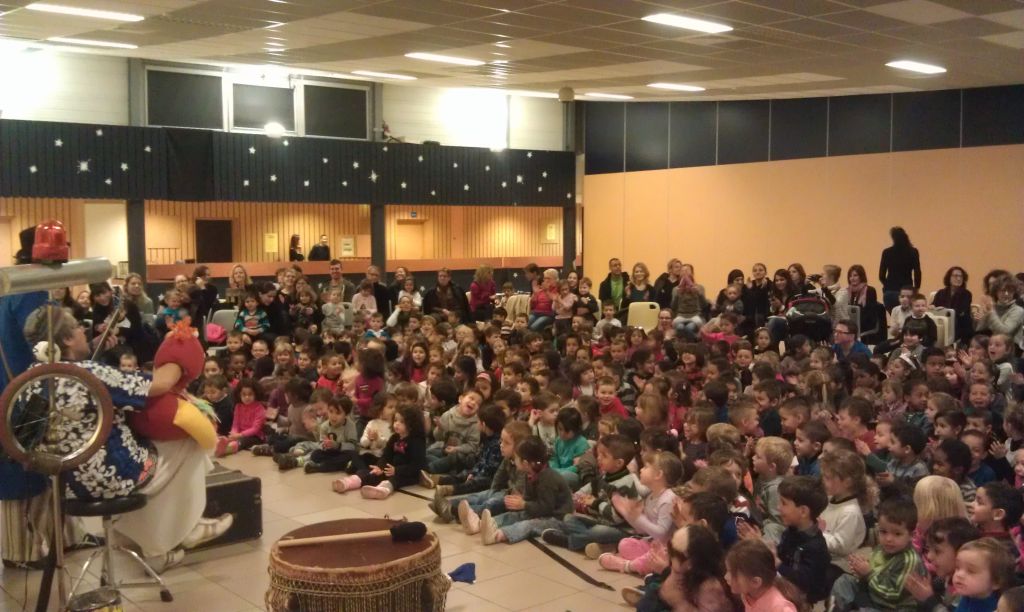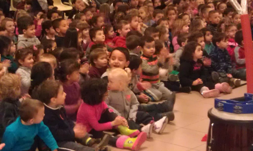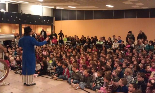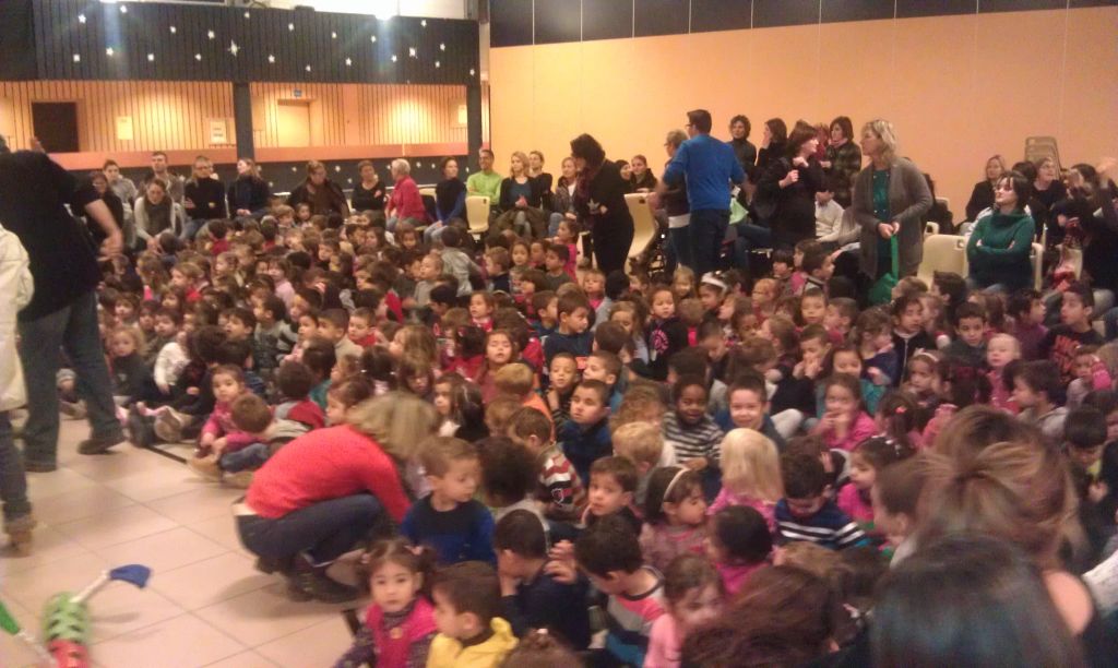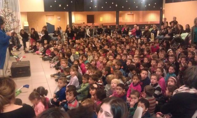 370 enfants ont participé à ce spectacle, accompagnés d'unez soixantaine d'adultes, enseignants et parents d'élèves accompagnant. Le père Noël est ensuite passé dans les classes apporter à chaque élève un sachet de friandises.