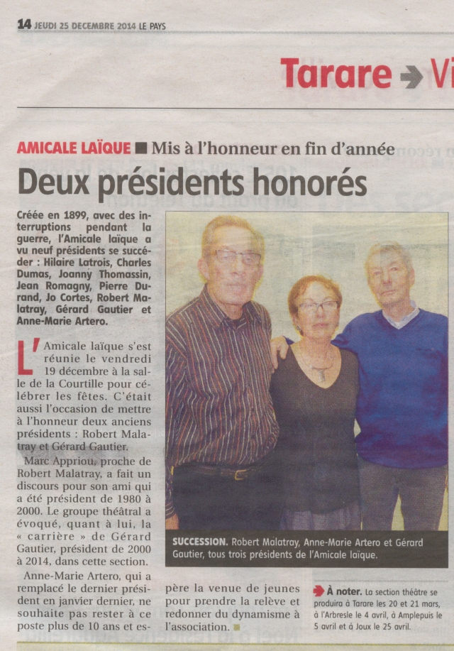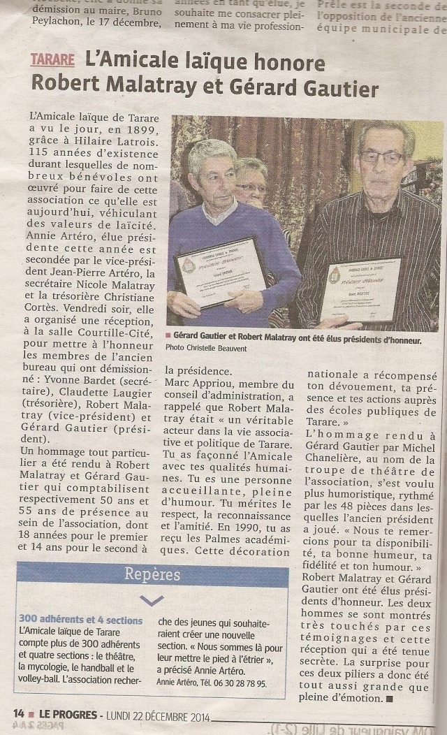 Articles de presse du Progrès du 22 décembre 2014 et du Pays du 25 décembre 2014